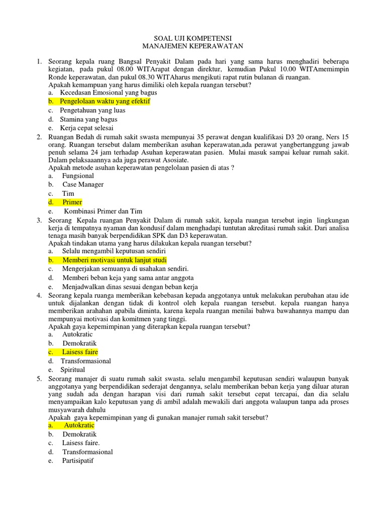 Contoh soal uji kompetensi ukom manajemen keperawatan dan kunci jawaban edisi 186 berikut ini adalah latihan uji kompetensi perawat ukom manajemen bagian ke 186 beserta kunci jawabannya serta. LATIHAN SOAL PILIHAN GANDA KEPERAWATAN PROFESIONAL. SoalApakah gaya kepemimpinan yang diterapkan.